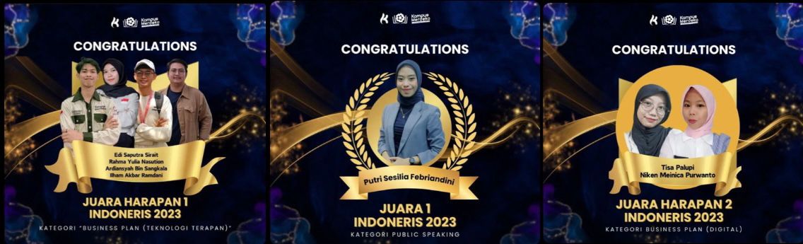 - Juara Harapan 1 kategori Business Plan: Teknologi Terapan oleh tim beranggotakan Edi Putra Sirait, Rahma Yulia Nasution, Ardiansyah Bin Sangkala, dan Ilham Akbar Ramdani, dan